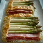 Blätterteig gefüllt mit Spargel und gekochtem Schinken