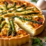Eine köstliche Spargelquiche mit einer goldenen Kruste und cremiger Füllung, ideal für Brunch oder als leichtes Abendessen.